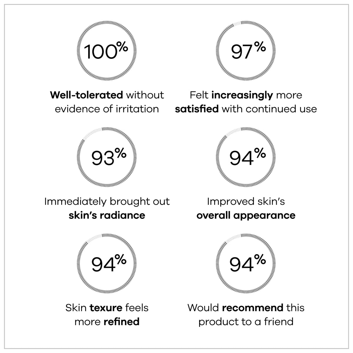 + The study investigator observed statistically significant improvements in the appearance of fine lines, wrinkles and skin firmness in as early as 4 weeks.