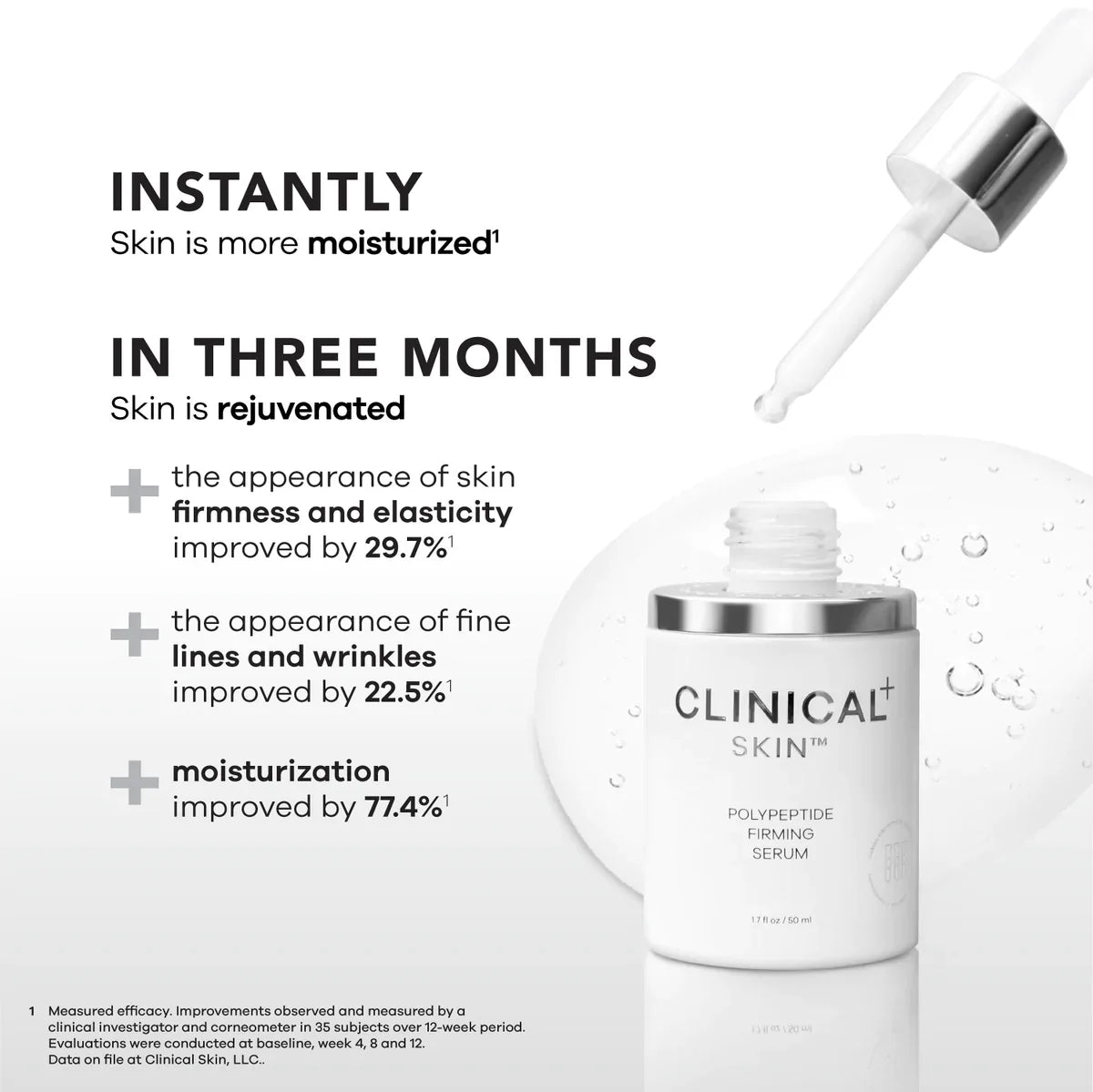 Clinical Skin is proud to be the highest caliber skincare on the market. But trust should be earned. That’s why every claim we make about Clinical Skin is substantiated by scientific data from an independent U.S. –based clinical study.