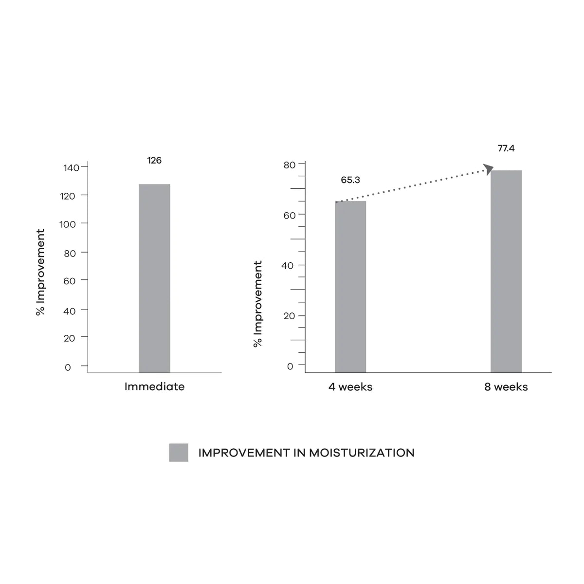 + Improvement in moisturization after 8 weeks by 77.4%